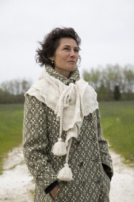 A piece to keep your shoulders warm. May be done in solids or stripes, with a few big tassels or many smaller ones.