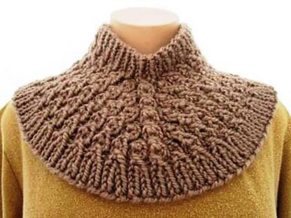 Here is a beautiful way to keep a neck toasty warm. This cowl fits nicely around the neck and over the shoulders. It uses bulky weight yarn and larger needles, so it’s a quickly finished project.