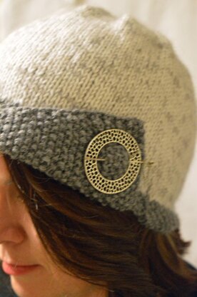 This cloche style hat gets an extra touch of elegance with the addition of Aloft Mohair/Silk blend being knit together with Wool of the Andes Worsted for the body of the hat. With the use of short rows the upturned, seed stitch brim receives a little extra drama and creates the perfect place to showcase an antique button or an heirloom brooch. Worked in the round, top down. Pattern is written for a 21” or 24” circumference.