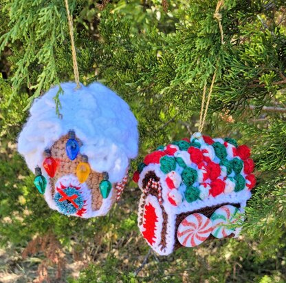 Crochet a delightful gingerbread house ornament with your choice of "frosting" roof (crocodile stitch) or "gumdrop" roof (popcorn stitch) and decorate it with buttons, ribbons, sequins, etc. Each gingerbread house can be decorated differently so you have a one-of-a-kind ornament for your Christmas tree. There's even instructions for making a chimney with Santa climbing down it.