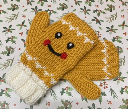 A cute and simple pair of mittens with a little bit of patterning. Add a fun element with eyes and smiling mouth to create your own little gingerbread person's face.