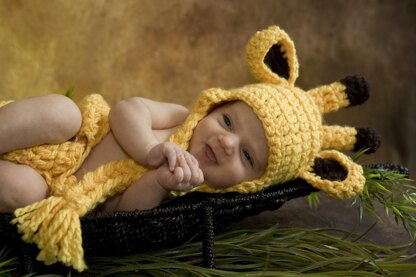 This adorable giraffe will look so good on your little one and comes with instructions for the diaper cover shown in the pictures. The diaper cover is great for photos, you can leave the diaper on preventing messes and your baby will still look great in the pics. There are instructions for an giraffe tail for even more cuteness.