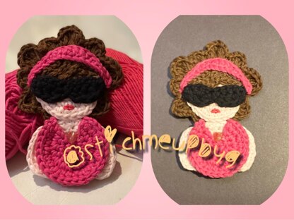Cool crochet girl appliqué pattern with detailed instructions and photos. You can spruce up your shopping bags, makeup bags, T-shirts,… and many more Happy crocheting!