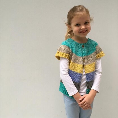 Celebrate the powerful little girls in your life with this simple and fun cardigan. With its straightforward construction and use of a self striping yarn, the Girl Power cardigan will fly off your needles. It’s perfect for all occasions…layer over a long-sleeved t-shirt and leggings for tree climbing, or over a beautiful dress for parties.