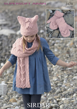 Girl’s T-Bag Hat, Scarf & Mittens in Sirdar Supersoft Aran - 2428