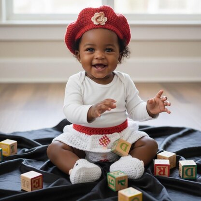A darling little skirt, hat and shoes. An easy pattern to do for the baby girl in your life. You can decorate and make this anyway you would like or as the pics here. The pattern is written all in US terminology. A great little outfit to make as a gift or for your shop to sell.