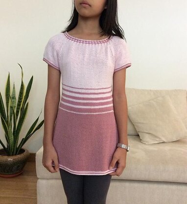 This is a simple dress/ tunic, featuring 2 colors woven cable neckline. Pattern include instructions to make a dress with wider skirt or a tunic with A-line skirt.