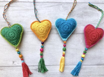 This tasseled heart ornament is a great gift for a friend or partner to show you care! Use it as a bag charm or hang several from a driftwood branch for a quirky home decoration. They also make a cheerful addition to your Christmas tree or a thoughtful homemade Valentine.