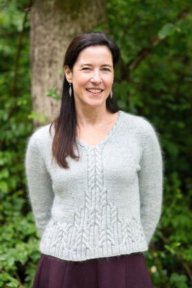 Cables cascading down the front and wrapping around the back to make a fun and intriguing knit! I found these two yarns (MAD|TOSH Tosh Merino Light + Tweed and Shibui Knits Silk Cloud) at my local yarn store (Loopville Yarns) and decided they were a perfect couple and had to be made into something. Thus we have Glacier Ridge! The MAD|TOSH is a lovely tweed in the colorway Moonglow and Silk Cloud is a lovely mohair adding the perfect halo in the colorway Glacier, one of Julie Hoover’s signature colorways. The construction is a modified version of the contiguous set-in sleeves method developed by Susie Myers.