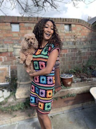 This beautiful festival inspired showstopper incorporates the beloved granny square bright colours and a delicious lame