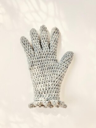 A simple and feminine design of crochet gloves. The pattern is made with worsted weight yarn with 5mm crochet hook, top down construction in rounds throughout.