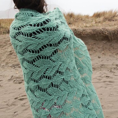 This blanket is knit straight, in one piece, from one end to the other. While it is knit back and forth, you will need a long (48 in or longer) circular needle to fit all the stitches on! You will need to know how to knit basic lace (yo, k2tog, ssk) as well as some of the trickier stuff like double yarnovers, and k4tog. (but don’t worry - it will be easy once you learn how!)