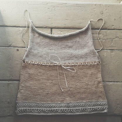 A pattern for a beautiful cotton strappy top for the summer. There are two options - the more free and easy version, and one with a little more fabric that allows for a strapless bra.You will need basic knitting and crochet skills for this piece. Easily customisable if you'd like it longer or shorter, too. You will need: 4mm circular needles 4ply cotton yarn - I used Cascade yarns Ultrapima Cotton Fine in sand and taupe (gold and silver). ribbon In three sizes. 8-10, 10-12 and 14-16