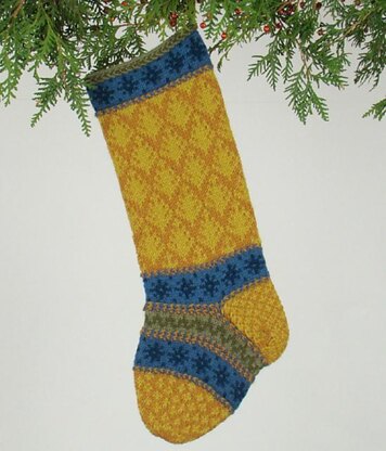 PATTERNS provide clear written instructions, along with color charts for each colorway, to knit a Christmas stocking in the round. Stockings measure approximately 20"x7", varying in size with individual designs.