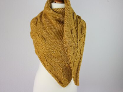 The shawl „Golden Leaves“ begins with only a few stitches and grows with increases at one side.