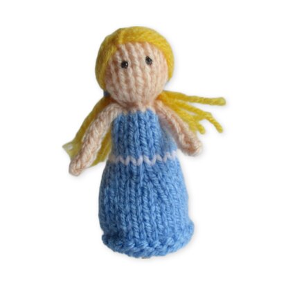 Goldilocks is a quick knitting project for using up odds and ends of yarn. Designed by Amanda Berry @fluffandfuzz, the finger puppet is knitted in acrylic DK yarns on single pointed needles (not in the round). The arms are little i-cord tubes knitted on two DPNs. For confident beginners and above, other techniques used include casting on and off, knits, purls, increases and decreases, and a little seaming to finish.