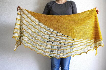 Created in collaboration with the yarn shop La Bien Aimee in Paris, this crescent shaped shawl associates garter stitch and lace pattern, for a elegant and graphic result.