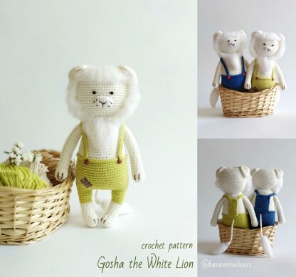 You will learn: • How to crochet in the forepaws into the body (not to sew!) carefully; • How to felt the mane and How to make a tail switch (has the tutorial with so many photoes and written description so it can be really easy to follow!); • How to make a loop for a button, overalls straps are infastened; • How to change yarn colors for the legs and body to put Gosha in the pajamas (has an Instruction).
