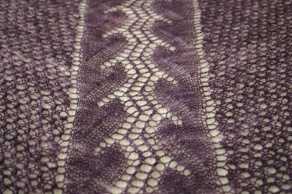 Whisper-light fabric and lace details combine for a gracefully elegant shawl. The center panel framed by curving lace wings was inspired by Faroese shawls and creates a shape that sits nicely on the shoulders. The stitch patterns are both written and charted, making this a deceptively simple project.