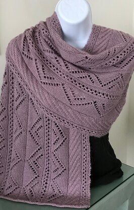 This contemporary rectangular wrap has just enough lace to make it feminine without being too frilly. The 32-stitch pattern repeat can be used any number of times to increase the width from a wide scarf to a slender wrap or wider shawl.