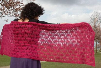 This elegant, easy-to-knit lace stole lends itself to infinite variation. Dimensions are for fingering weight yarn, but this design is suitable for any yarn, any gauge. As designed, the stole is symmetrical, knit from both sides to the center and grafted together. However, if you don’t mind the lace pattern being asymmetrical, you can forego the grafting and knit the stole straight through from one end to the other. Instructions are included for both ways to knit the stole. Pattern contains 4 pages and is both charted and written out.