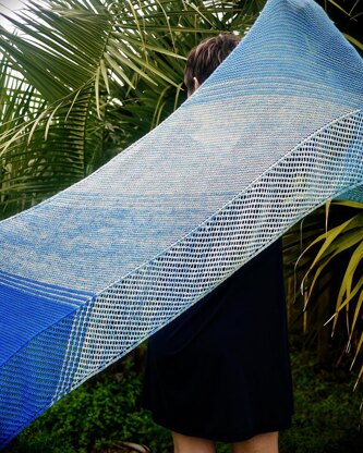 A shifting gradient of colors works across this arrow-shaped wrap. This design is a great compromise between easy knitting and a little bit of interest to keep you entertained.