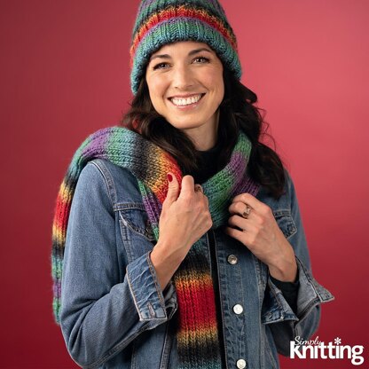Let the yarn do the hard work when you knit this multi-coloured accessory set filled with graduated colour. Both patterns are knitted in a simple rib making the projects a simple one for a newbie knitter who has mastered the basics.