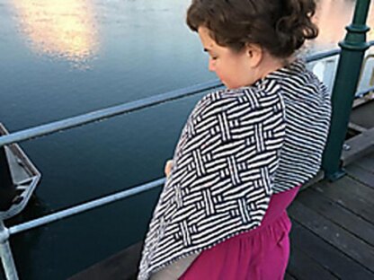 A garter stitch wrap with visually striking mosaic stitch panels on either end result in a modern and wearable garment. With just the right amount of easy garter stripes in the middle so that this project flies off the needles. The piece is worked on the bias for a beautiful heavy drape when worn and has an attached i-cord edge for a perfect finish all the way around.