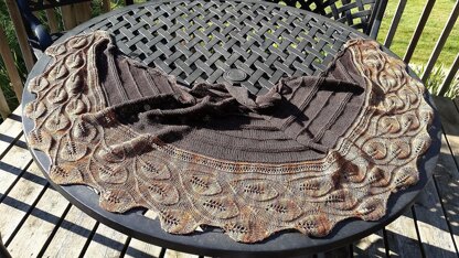 A beautiful crescent shawl, celebrating leaves
