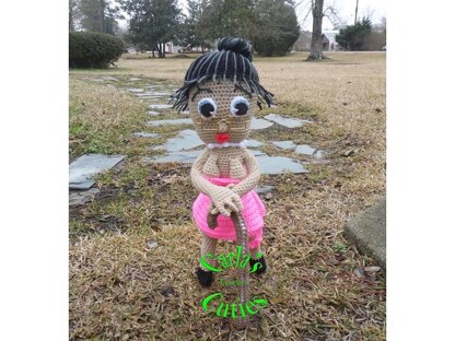 This pattern is easy to work. You will need beginner skills in crochet stitches to make this doll. You will need to know how to sc, dc, hdc, inc, dec, close, and fasten off. You will also need to know how to work in rounds and in rows. There are 11 pages of step by step instructions with color photo tutorials when needed.