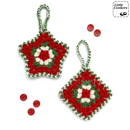 Inspired by the classic crochet granny square, you can make these ornaments in different colours to match your home and the seasons.