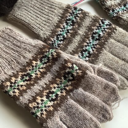 These traditional Fair Isle gloves are named in memory of my Granny who left within her knitting bag a pair of Fair Isle gloves which had been knit but not finished as ends need woven in and they need to be washed and blocked or as we say in Shetland, dressed. Granny was named Granny Lerwick by my sons to distinguish her from their other grandmothers and the name seemed fitting for these gloves.