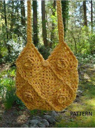 This chic little bag consists of thirteen granny squares that are joined together as you crochet. Eight of the squares start with a flower. This pattern is not for the "faint of heart" as it is designed for the experienced crocheter. But this fashion statement is well worth the effort.