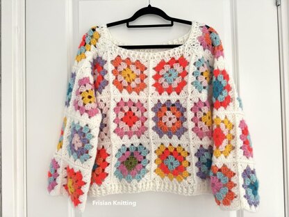 This pullover is very suitable for beginner crocheters, the pattern is accompanied by videos. It is crocheted from various leftover mohair wool, in different thicknesses. As a final result you get a beautiful colorful and lightweight sweater, you can choose your favorite colors yourself. Immediately after purchasing, you will receive a downloadable PDF copy of this pattern. Materials: 500 Gram Mohair yarn Crochet hook: 6 mm / J Sizing: S/M and L/XL Language: English (US), German and Dutch Used stitches: Chain, Slip Stitch, Double Crochet, Double crochet front post, Double crochet back post