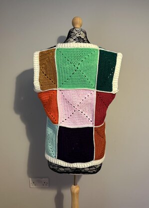 With crochet clothes coming back into fashion, this granny square vest crochet pattern is a must have. Super easy to make it consists mostly of Granny squares and SC.