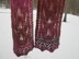 This lovely grape-hued scarf features a center of leaves and a lace side edging which is a pleasure it knit in a luscious color-changing yarn. You knit it from the bottom up to the Kitchener stitch joined center following either charts or written instructions. There are rippled bottom borders which add extra lacyness to the pattern!