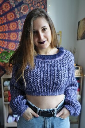 Introducing a one-of-a-kind crochet sweater that is sure to make a statement! This design has the most satisfying texture that creates a unique and visually striking pattern: The fluffy collar adds a playful touch, while the construction of this sweater will keep you engaged and challenged.