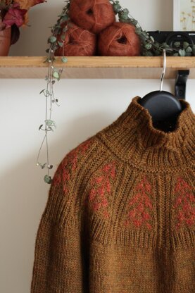 Grass Whispers is a very eclectic design: with cables, ribbing, colourwork and stockinette stitch, — all in perfect balance. The pullover is worked top-down in the round with an optional mock neck and an easily customizable length.