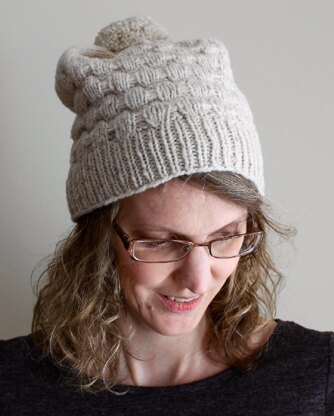 This slouchy hat is naturally asymmetrical, giving it a unique shape and style. The easy slipped stitch pattern gradually decreases to a peak at the top of the hat while the stockinette section grows. This creates the perfect amount of slouch. This pattern is worked in the round. The stitch pattern is written and charted.