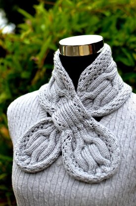 Skills needed: Knit and purl sts, lace sts, cable sts and provisional cast on