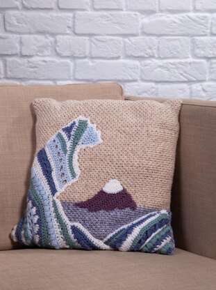 An adventurous crochet pattern, inspired by Hokusai's "Great Wave off Kanagawa" woodblock print. Use the suggested yarns, or substitute with small amounts from your stash in beautiful sea blues and greens.