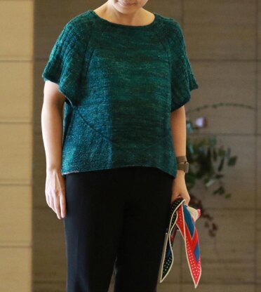 Green T is a simple loose fit sweater. Worked from top-down, in the round. Body is constructed with stockinette stitch and the lining separating knit and purl stitches. Sleeve is constructed with center cables and ribbing. This is very simple and easy design, appropriate for all leveled knitters.