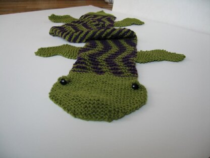 Designing shadow knitting can be complex, but knitting shadow knitting is easy. It was fun designing Gregory's face and then adding the zig zags to his body. His legs I just picked up stitches and knit out. Throw in a few increases and decreases and you have legs for your Gecko.