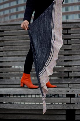 Garter stitch and a broken brioche stitch, color blocked and striped, combine to make this lovely, top down, half-pi shawl a showpiece for your speckled yarns.