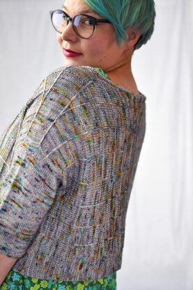 There is nothing quite like a true wardrobe staple: A sweater light enough to wear all year, with a flattering drape, a slightly oversized fit, and a simple design with a twist. The sweater is knit sideways from the center out with a seamless modular construction and #sizeinclusive Mix & Match sizing: You can chose and combine any of the 7 circumferences (1-7), 7 lengths (a-g), 3 neckline options (S-L) and even customize the sleeve circumference to create your perfect sweater fit.
