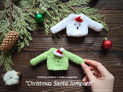 Video support has: how to form the sleeve and hide the gap under armpit; how to embroider the bear and Grinch noses (two different ways); how to embroider the Grinch smile in very easy way!; tutorial How to crochet the Santa hat; tutorial How to make a loop for a button.