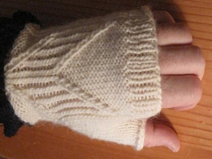 These fingerless mitts will keep a guitar-player's hands warm while allowing for unmatched flexibility. The ultra-wide thumb gusset allows the fingers and thumb to move together with greater dexterity than conventional thumb designs. This stretchy thumb gusset allows the fretboard hand to easily finger complex chords, even wrapping the thumb onto the fretboard à la Tal Farlow, without restriction or interference. The picking hand thumb and fingers move more freely than with conventional thumbed mitts.