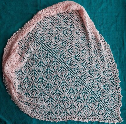 Gulshan is a top down triangular shawl knitted in one piece. Any lace weight yarn can be used given that the gauge is checked and appropriate size of knitting needles are used.
