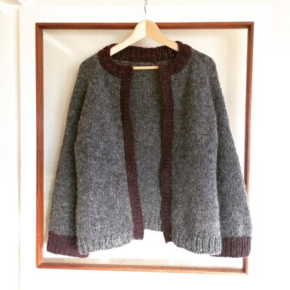 This cardigan is worked in the round, top-down. The cardigan opening is created at the end by cutting a steek and working a ribbed lining. Ease for the finished garment is around 10 cm / 4 inches around the bust, since it's intended to be worn rather like an outdoor coat than an indoor cardi since it's so warm. The Alafosslopi is a bit itchy but enormously warming and even quite resistant to rain, ideal for outdoors use. Sizes follow the CraftYarnCouncil's standard as closely as possible. Yardage is around 20% CC (linings) and 80% MC.