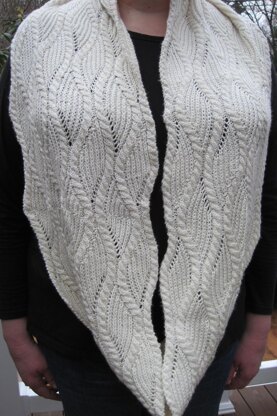 This is a pattern for an intricate brioche and cabled cowl. The finished cowl measures 14 1/2 inches X 64 inches (but is easily adjustable, and instructions for dong this are explained in the pattern.) The cowl can be worn long or doubed as seen in some of the pictures. It can drape over your shoulders in a way that won’t fall off. Or it can be doubled for extra warmth in the winter or early spring. The combination of the brioche stitch with the traditional cable is not seen very often, and makes a striking combination.